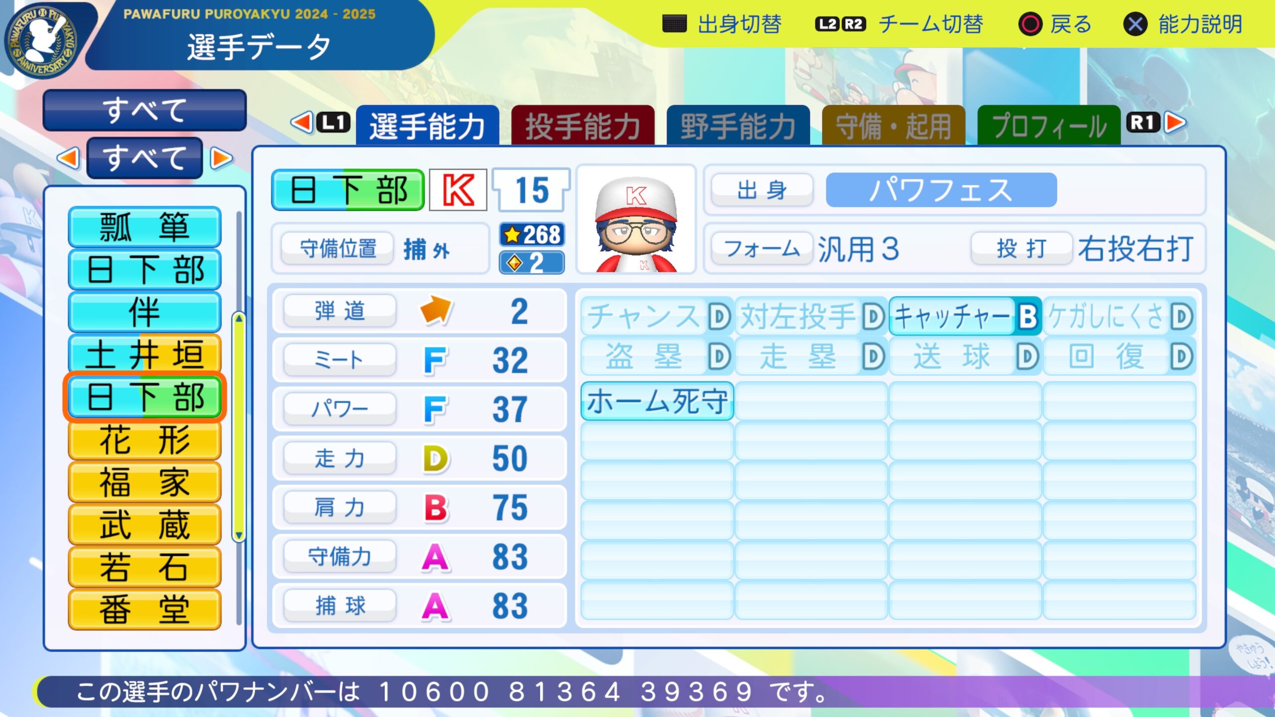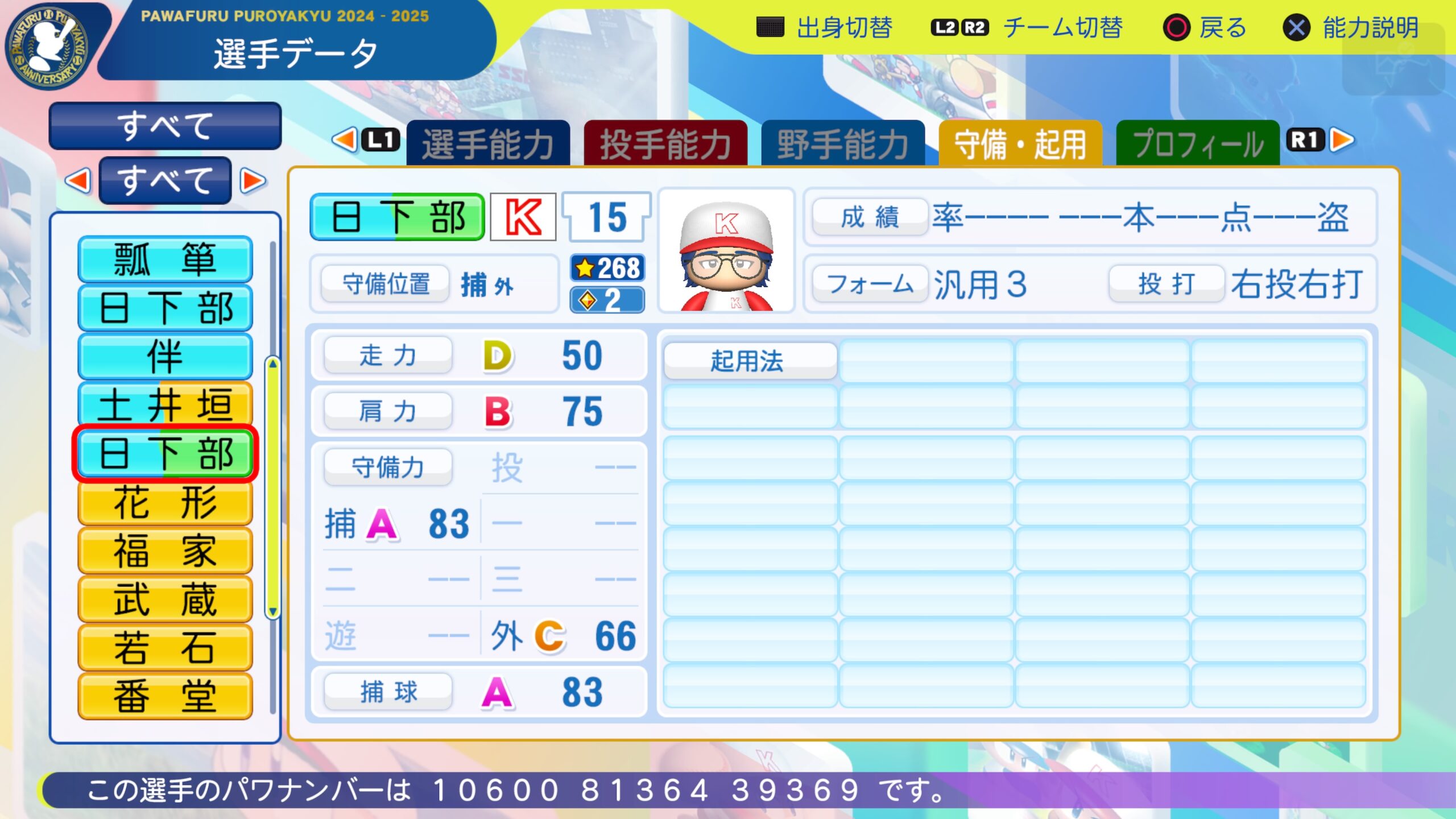 パワプロ2024-2025 サクセス選手 日下部卓也 ドラフト査定 2025年9月27日 最終更新日時 : 2025年10月1日 rei サクセス選手 日下部卓也 経歴 あかつき大学附属高校→栄光学院大学→ヤクルトスワローズ→福岡ダイエーホークス ペナントに組み込んでみてください パワナンバーは画像の通りです \ 最新情報をチェック / @reiuraakad X