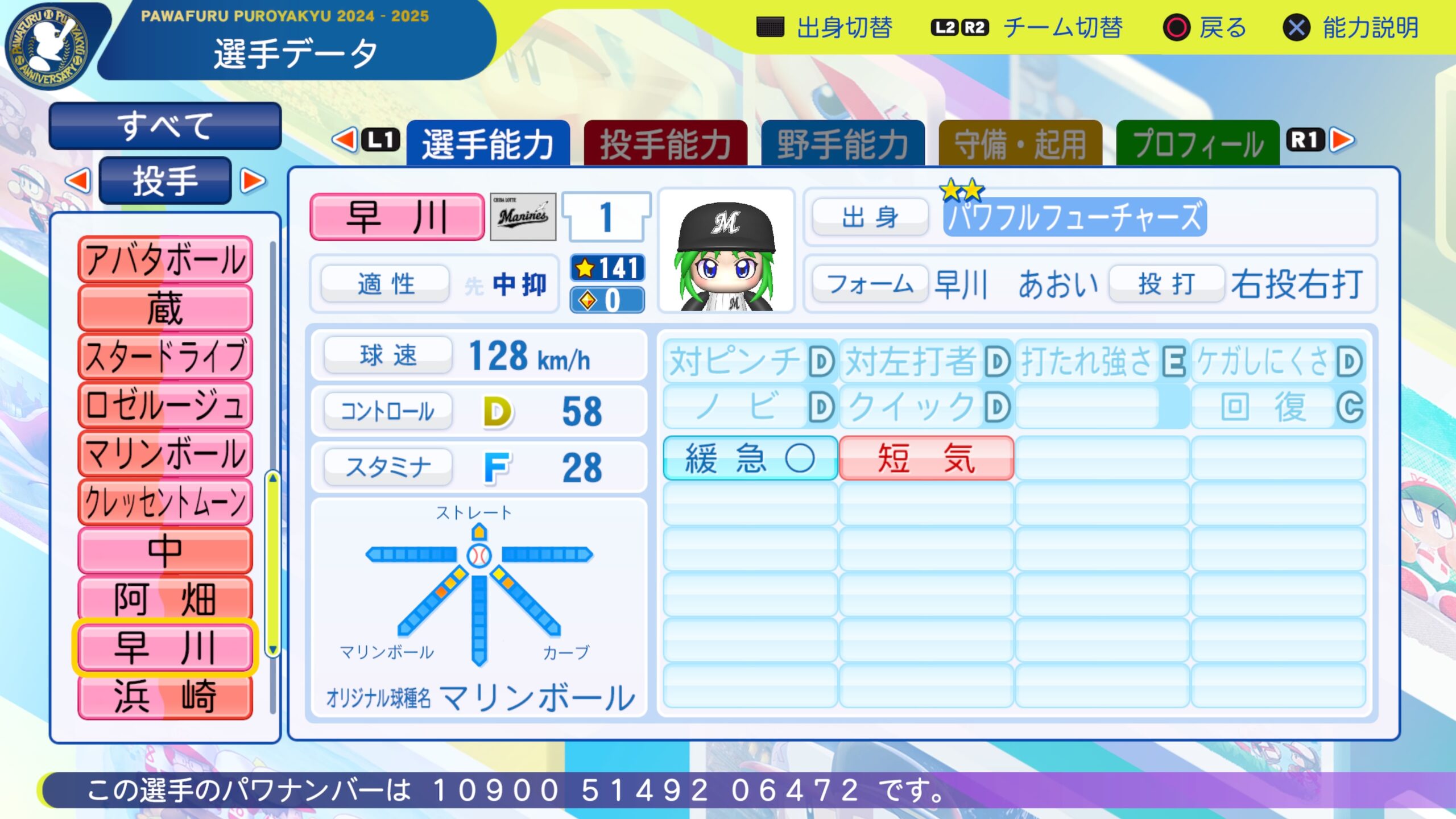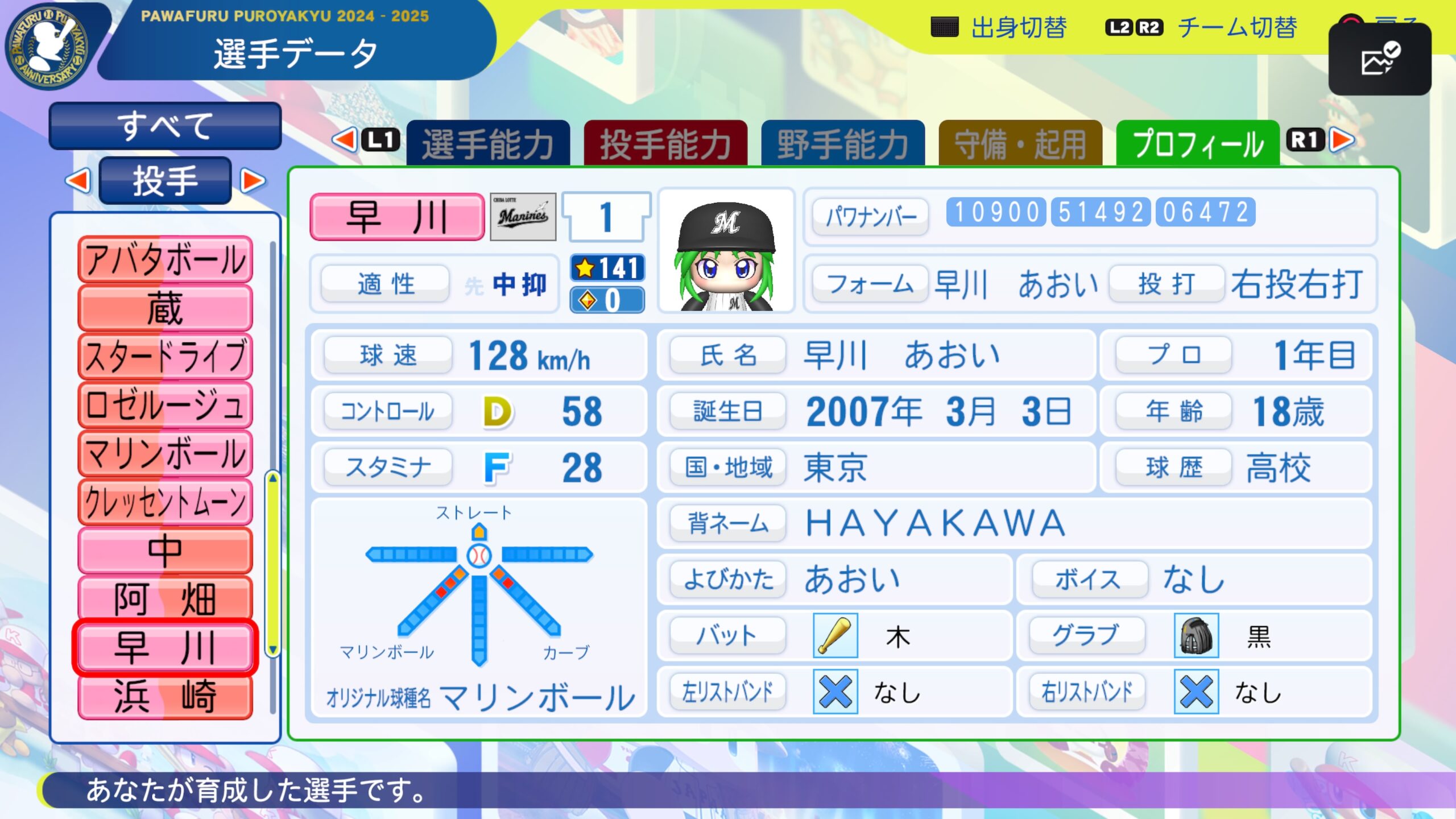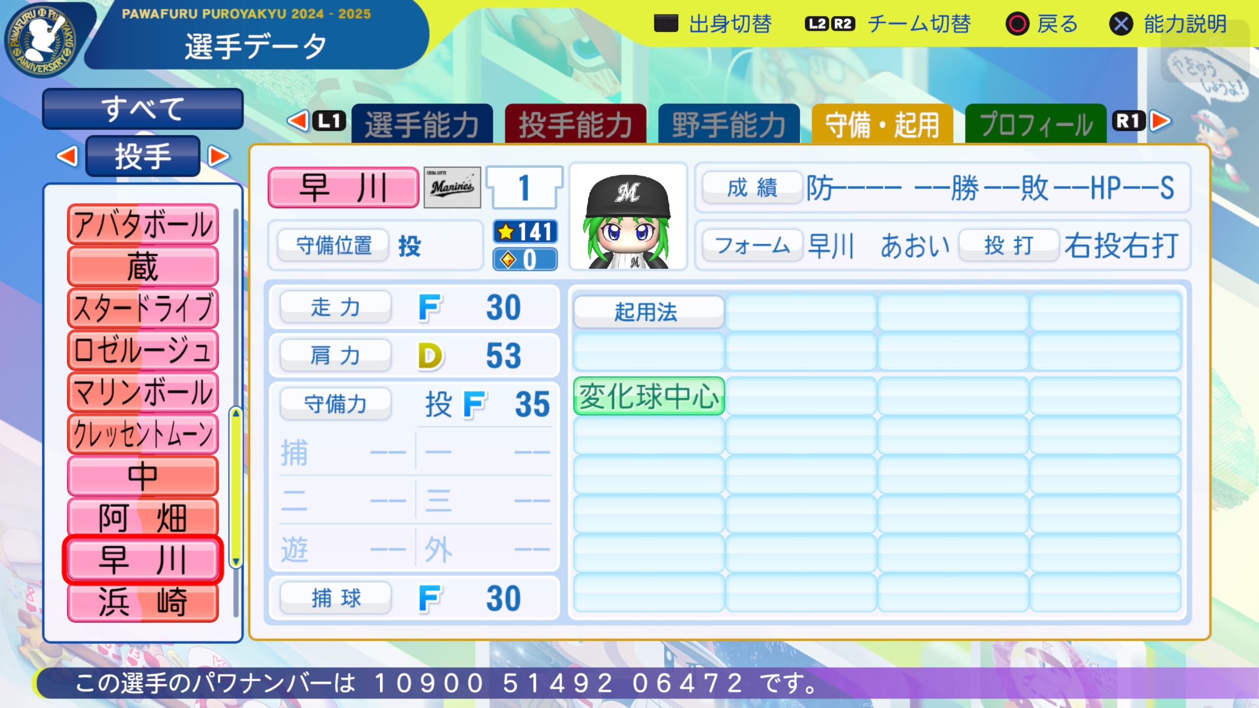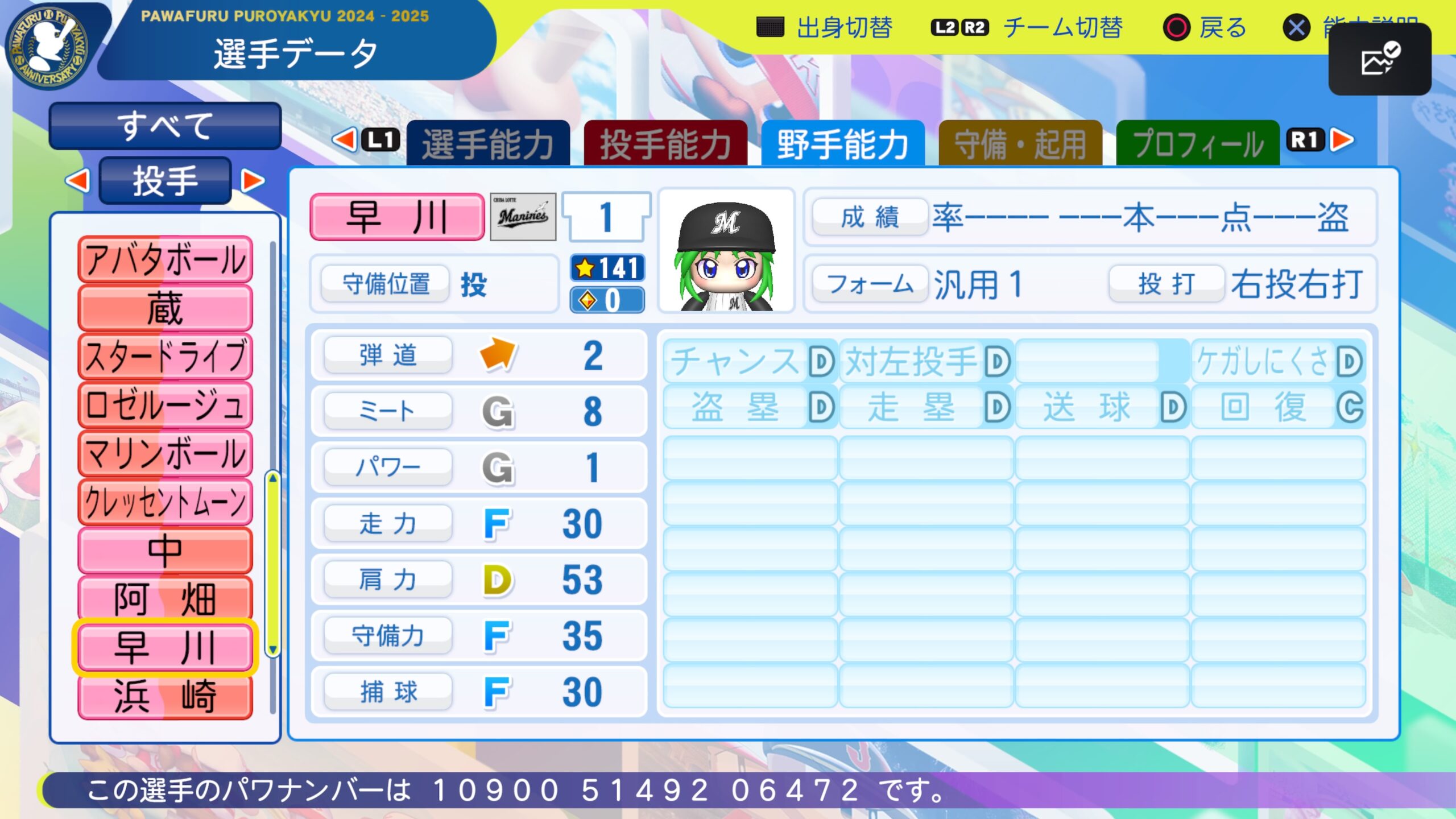 パワプロ2024-2025 サクセス選手 早川あおい ドラフト査定