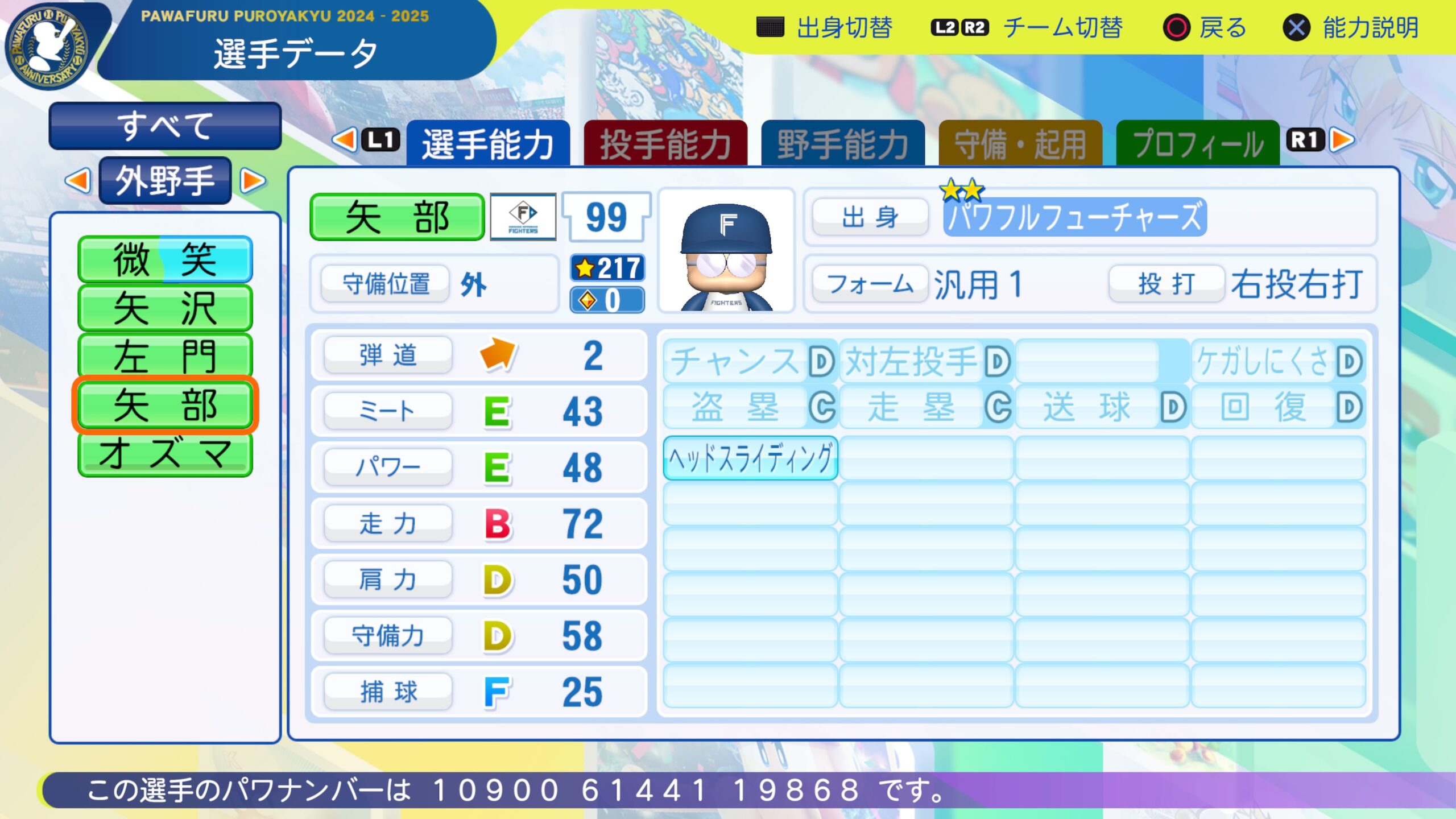 パワプロ2024-2025 サクセス選手 矢部明雄 ドラフト査定 2025年10月26日 最終更新日時 : 2025年10月26日 rei サクセス選手 矢部明雄 経歴 恋恋高校→日本ハムファイターズ ペナントに組み込んでみてください パワナンバーは画像の通りです \ 最新情報をチェック / @reiuraakad X