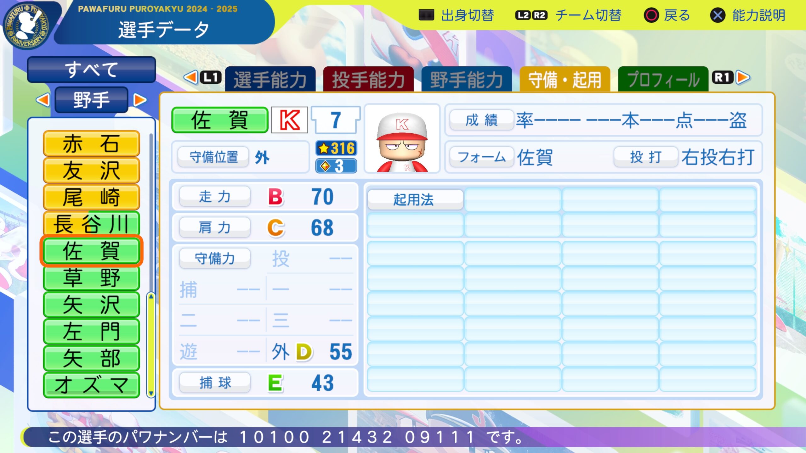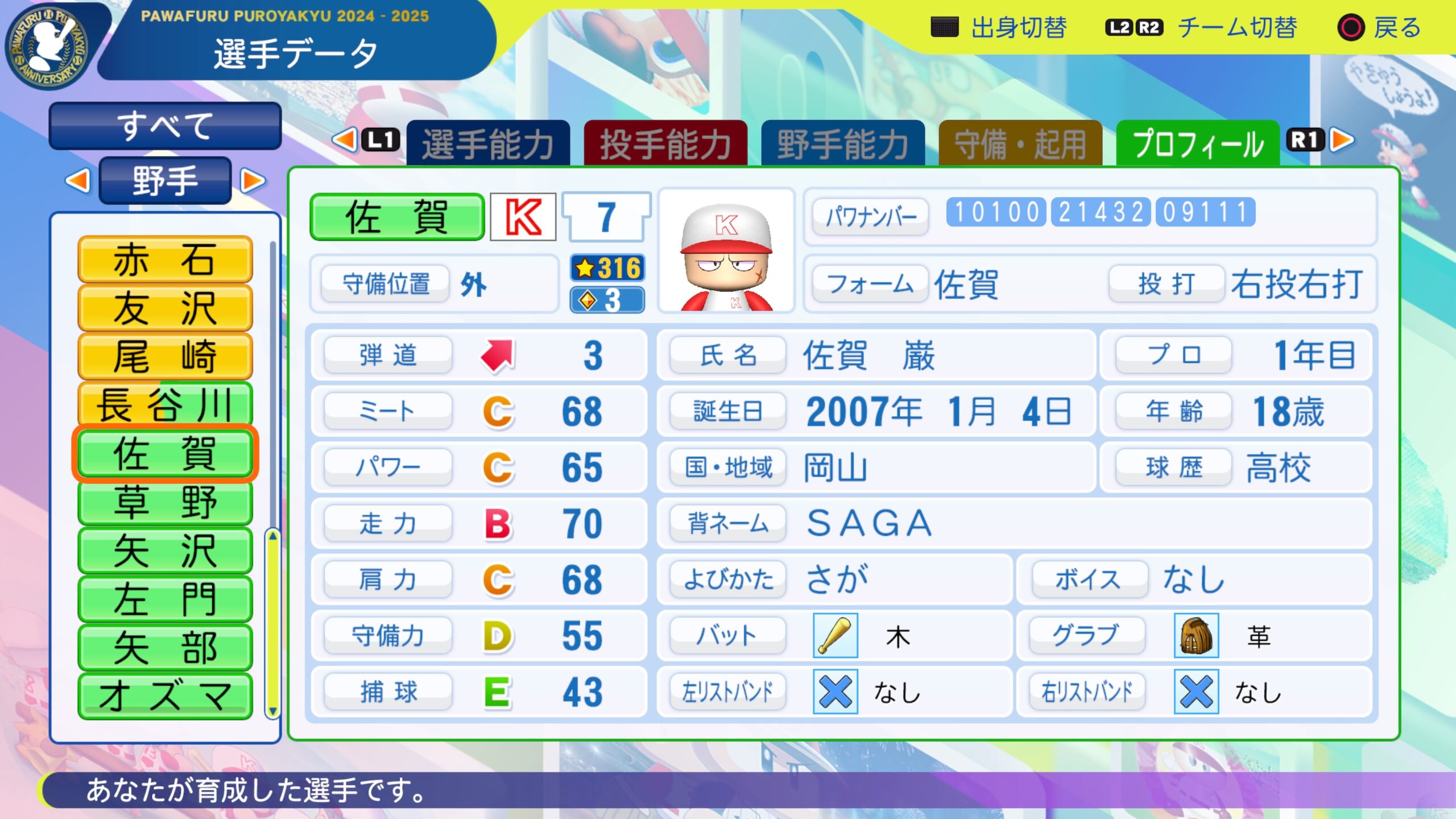 パワプロ2024-2025 サクセス選手 佐賀巌 ドラフト査定 2025年11月5日 最終更新日時 : 2025年11月5日 rei サクセス選手 佐賀巌 経歴 鬼ヶ島分校→ ペナントに組み込んでみてください パワナンバーは画像の通りです \ 最新情報をチェック / @reiuraakad X