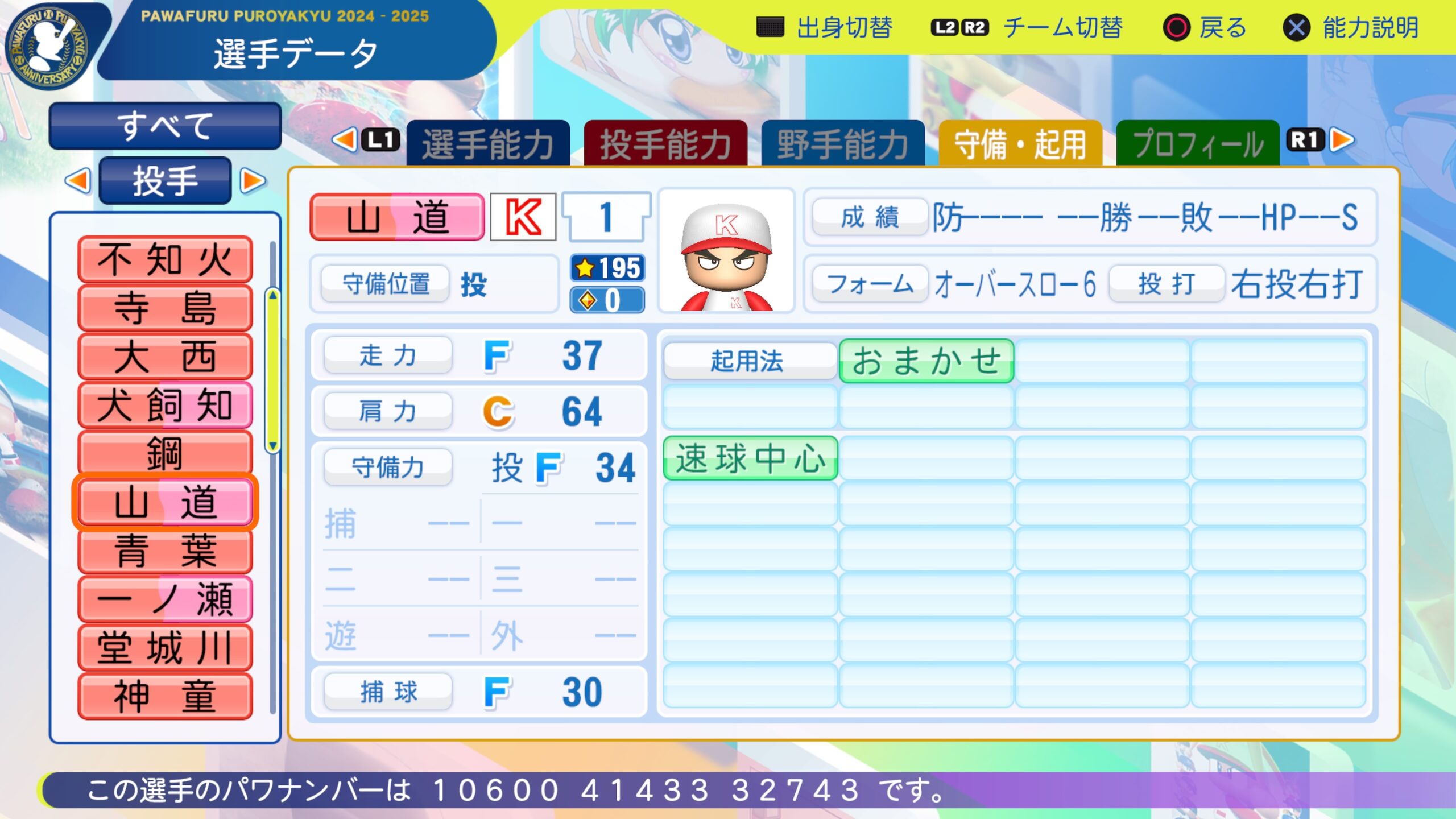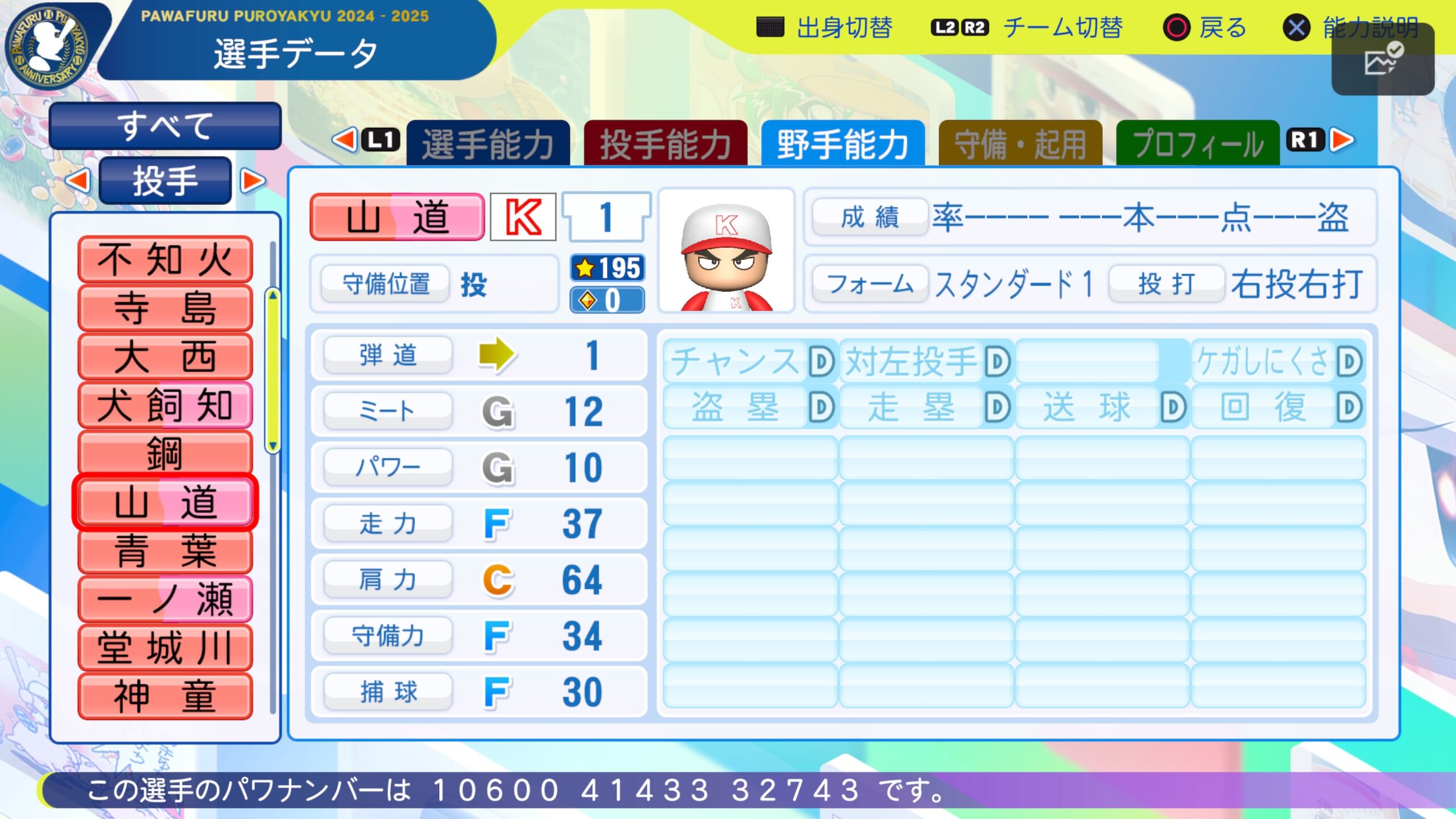 パワプロ2024-2025 サクセス選手 山道翔 ドラフト査定 2025年11月5日 最終更新日時 : 2025年11月5日 rei サクセス選手 山道翔 経歴 パワフル高校→広島東洋カープ ペナントに組み込んでみてください パワナンバーは画像の通りです \ 最新情報をチェック / @reiuraakad X