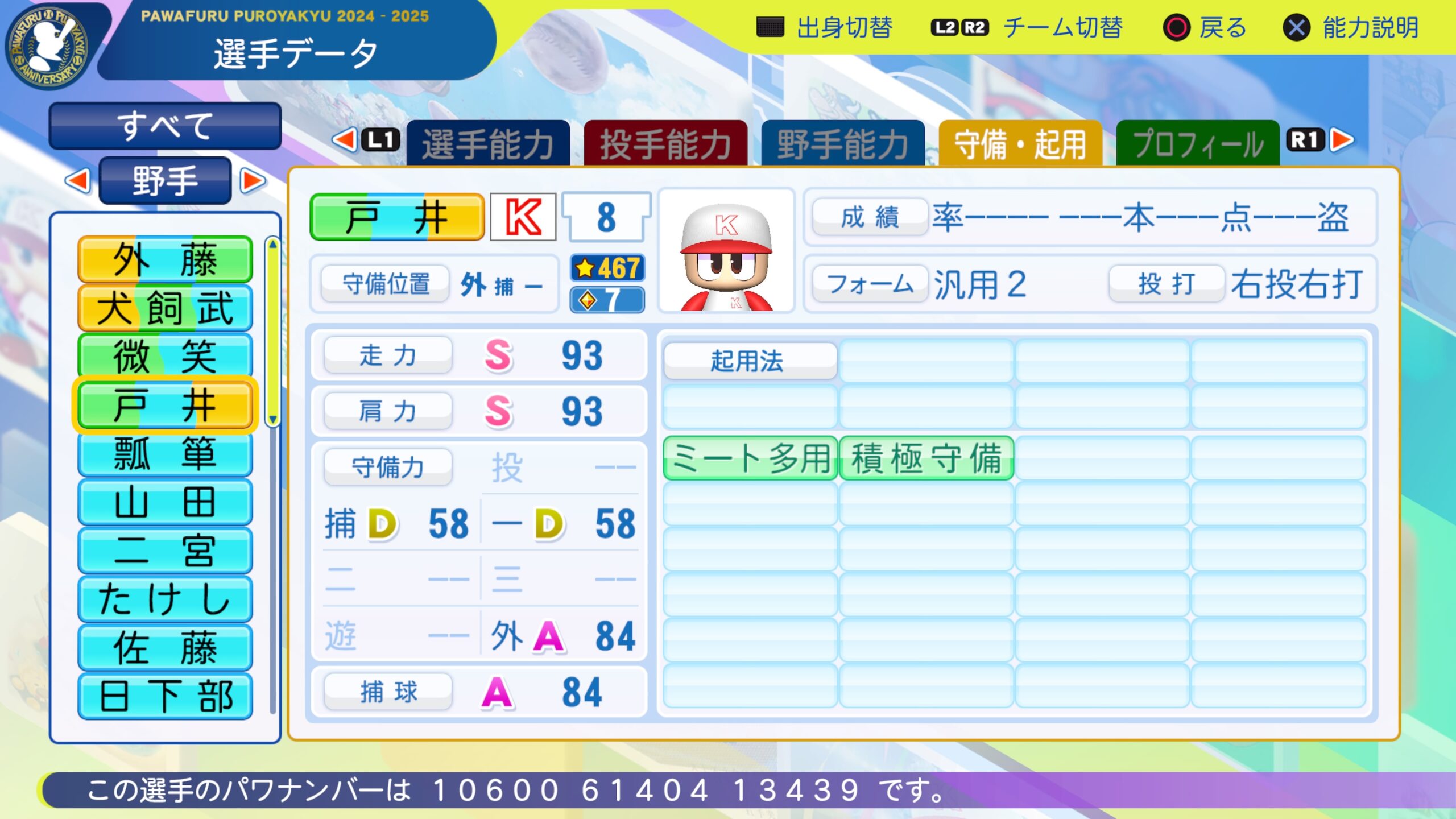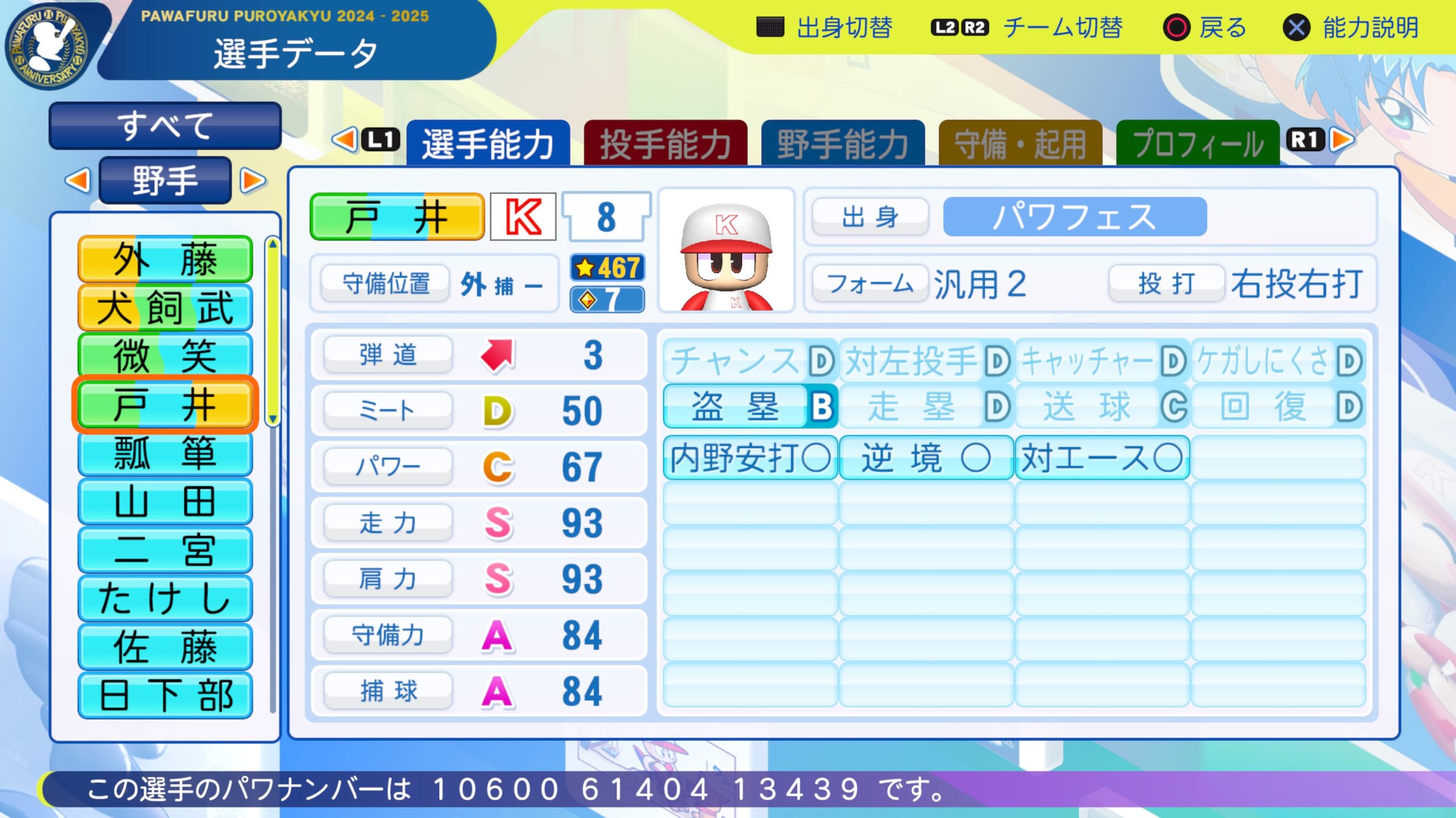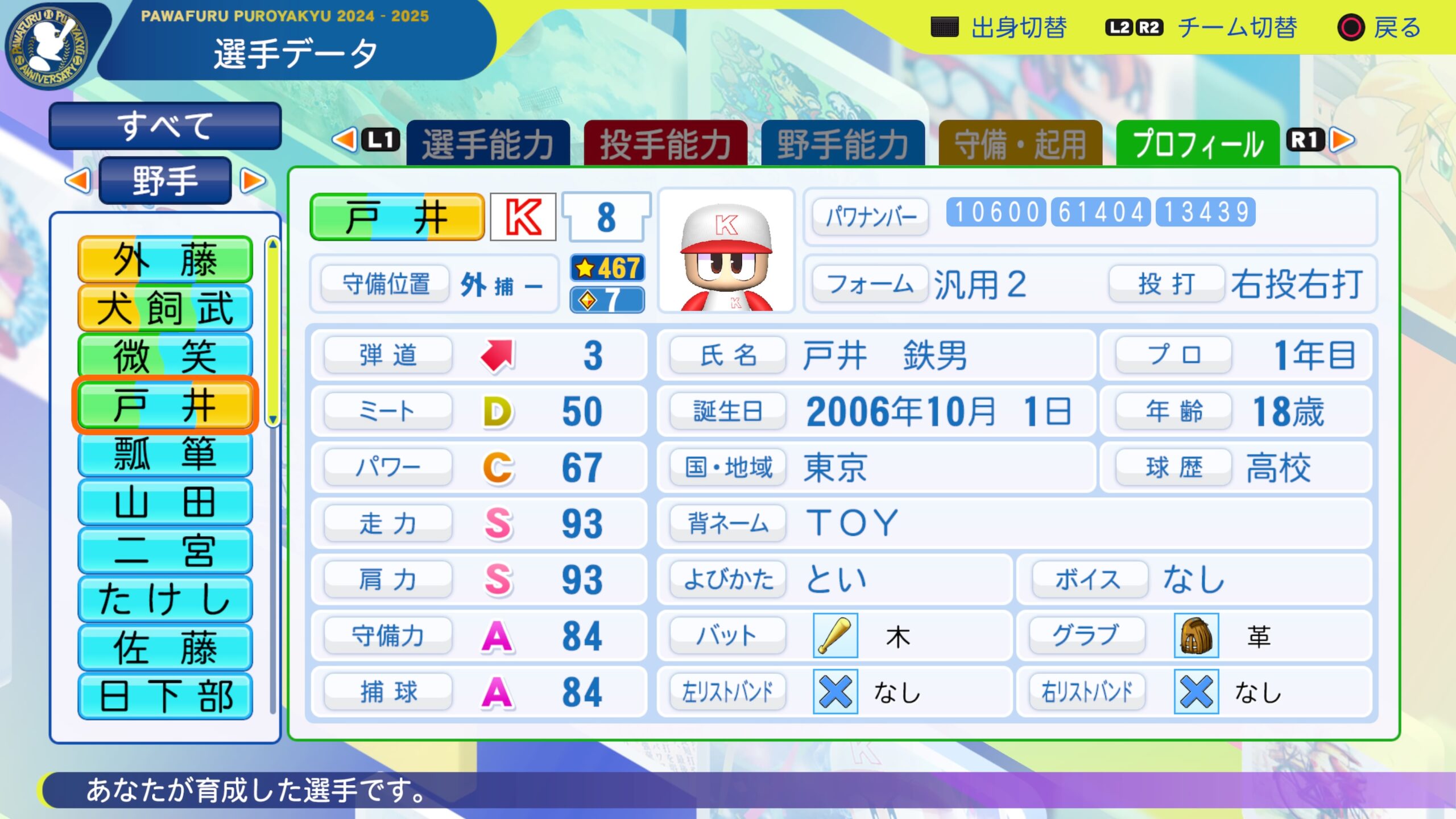 パワプロ2024-2025 サクセス選手 戸井鉄男 ドラフト査定 2025年11月5日 最終更新日時 : 2025年11月5日 rei サクセス選手 戸井鉄男 経歴 パワフル高校→ ペナントに組み込んでみてください パワナンバーは画像の通りです \ 最新情報をチェック / @reiuraakad X